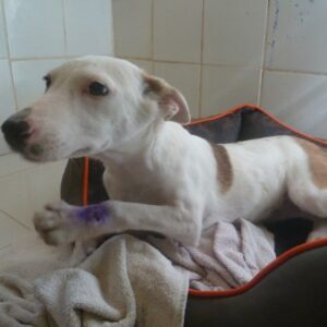 path of life : Moni had foud she screaming outside while the other dog trying to attacking her she had sent Alex from the clinic and he bringed her into the clinin with a little injury in her front left leg and she is now healing