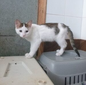 Annoni is born in our clinic. His mama come from Safaga after castration days with a big wound on her leg. She was highly pregnant and we have decided to let her stay with us until she give birth. She get 3 kittens, 1 dead after birth.And Annoni stay with us with his brother.