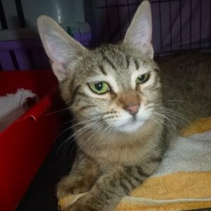 Lebensweg/path of life :PK 25.66 geb. 01.09.24 femaleThe driver of Methat Gamal (Colonel of the traffic police station in Mubarak 1) brought Mercedes for vaccinations, deworming & ear cleaning. The cat was left in the clinic ( because the cost was too much ) after the second day Usha brought the cat to the station and spoke with the colonel, they agreed that the cat will be taken at 3 o’clock today (27.03.25) without paying for anything. Mercedes needs a save home, where she can stay forever, without being given away again.